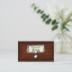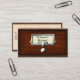These fun, novelty library card catalogue business cards will really catch the attention of the recipient. On the front, they look like an antique wood book card catalogue drawer, complete with a silver slot and handle and a slightly crinkled paper for you to write your name on. On the back, you find the vintage card inside the filing drawer. It's made to look slightly old and worn and has faint blue stripes.