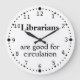 This funny design custom wall clock says Librarians are good for circulation.