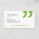 A clean and professional business card that is great for libraries, librarians, book publishing companies, editors and other book-related companies, as it has quotation mark design on the front and an open book watermark design on the back, in green.