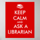Make your own keep calm library poster with this customisable template. It has a stack of books instead of the keep calm crown logo. It says Keep Calm and Ask A Librarian.