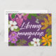 Libreng mangarap, which means "dreaming is free," Filipino phrase motivational postcard. The illustration features Philippine native flowers (clockwise from top left): Medinilla magnifica, Pterocarpus indicus, Gardenia mutabilis Reinw. ex Blume, Dillenia Philippinensis, Lagerstroemia speciosa