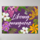 Libreng mangarap, which means "dreaming is free," Filipino phrase motivational postcard. The illustration features Philippine native flowers (clockwise from top left): Medinilla magnifica, Pterocarpus indicus, Gardenia mutabilis Reinw. ex Blume, Dillenia Philippinensis, Lagerstroemia speciosa