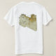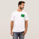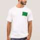 The front of this t-shirt bears a small Libyan flag with its familiar white crescent and star in a black band with red band above and green band below, while the back displays a relief map of Libya. Available on t-shirts, sweatshirts, polos, long-sleeves and more.
