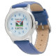 The blue band is the right color for a boys watch. My grandson loves lacrosse and the watch is easy to put on. He is ten years old. The lacrosse picture is very clear and I like the blue hands on the watch. It's good for teaching time.