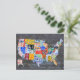 License Plate Map of the USA on Grey Wood Planks Postcard