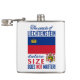 The flask itself is fine. It’s a cheap flask, obviously bought in bulk, however am prepared to overlook that. Given that it is a personalized item, I would have liked to have seen gift boxing instead of the generic packaging. Terrible printing, and/or quality. It’s a cheap, tacky vinyl. It is not cut straight and is also applied in a way that it is overhanging the bottom, causing the glue to catch on items and it will eventually roll and tear, damaging the wrap.