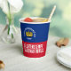 Celebrate Liechtenstein's National (Independence) Day with these striking August 15th paper cups, which feature the brilliant blue and red hues plus the ducal hat of this European microstate's flag. Customise messaging as desired. Reverse shows identical design.