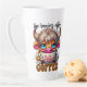 A playful and vibrant design showcases an adorable highland cow sipping coffee from a mug adorned with two hearts. A cheerful daisy adds charm to the scene, accompanied by colourful text that reads, "Life begins after coffee." This delightful design is featured on a variety of products, making it a perfect gift for coffee enthusiasts.