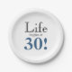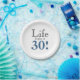 Life begins at 30 slate blue and black retro graphic font design . A milestone birthday should include a cool retro design in cyan azure slate blue and black.
