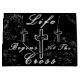 A wonderful worship message with a silhouette of three crosses to remind Christians that eternal life begins at the cross of Christ.