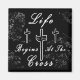 A wonderful worship message with a silhouette of three crosses to remind Christians that eternal life begins at the cross of Christ.