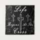 A wonderful worship message with a silhouette of three crosses to remind Christians that eternal life begins at the cross of Christ.