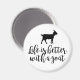 Fun design features goat silhouette with "life is better with a goat" text in modern script