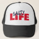 Introducing the "LIFE" trucker hat featuring the iconic "Salty AF" logo overlaying bold red typography. Crafted with premium materials for comfort and durability, this hat merges irreverence with style. Whether you're exploring the cityscape, chilling by the beach, or navigating life's adventures, this hat is your perfect companion. Embrace the blend of attitude and vitality with every wear, and make a bold statement wherever you go.