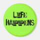 "Life Happens" magnet. Background colour can be customised.