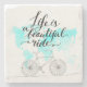 Inspirational quote - life is a beautiful ride. Handwritten modern calligraphy poster with watercolor blue world map and hand drawn bicycle. | Bigstock® - All Rights Reserved.
