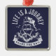 Sailing illustration with "Life is a journey, enjoy the sail" text design and sailing ship, seagulls, and waves decoration for everybody who loves sailing