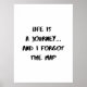This quote poster features the words “Life is a journey… and I forget the map.” A light-hearted design that brings humor and warmth to any room. Perfect for hallways, offices, living rooms, or creative spaces. With its simple, modern style, this artwork suits many interior trends and makes a thoughtful gift for anyone who loves travel, humor, or motivational quotes with a twist. You can change the background color, like you want. Just click <<personalize this design>>.