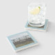 The coasters are gorgeous, a quality feel and heavy weight. They look like a precious archeological find. A rustic stone juxtaposed with a modern floral black and white print. I like the way the print goes slightly imperfect on the cut stone edges giving them a kind-of natural beauty.
