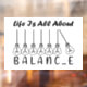 life is all about balance, balance, brush script, bulb, cursive, life quote, light bulbs, pendulum, life saying, script lettering, incandescent lamp, balance quote, pendulum balls, balance wheel, script typography
