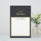 Personalised "From the desk of" stationery paper with a gold coloured illustration on a black-grey background. Designed with an illustration of a mountain with the suns rays shining outward from behind. Typography says: Life is an Adventure explore dream discover. A white square to write inside which has a thin faux-gold border.