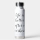 Life is better after a workout custom sports Water Bottle. Insulated water bottle for gym, fitness, training, crossfit, lifting, yoga, pilates, stretching etc. Personalise with your own name and cool quote optionally. Black and white typography or change into your own favourite colours. With handy popup straw for sipping. Fun Birthday gift for personal trainers and athletic people.