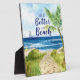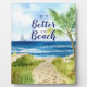 Pretty watercolor landscape beach scene plaque will remind you that Life is Better at the Beach, because we all know this is true! Features a sandy beach path with palm tree and sailboat out on the water.