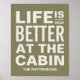 An amazing housewarming gift or cool custom addition to your woodsy home, our frameable print features "Life is Better at the Cabin" in block typography on an olive green background. Personalise with your family name in matching lettering at the bottom.