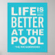 An amazing housewarming gift or cool custom addition to your pool area, our frameable print features "Life is Better at the Pool" in block typography on an aqua pool blue background. Personalise with your family name in matching lettering at the bottom.