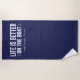 LIFE IS BETTER ON THE BOAT Family Name with Established Year Square Beach Towel. Personalise this beach towel by entering your name and established date in the custom fields provided. *Shown in white text on navy background. *Beach towel background can be changed by clicking on "Customise it" button. Makes a perfect gift for the boat lover!