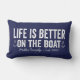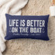 LIFE IS BETTER ON THE BOAT Family Name with Established Year Throw Pillow. Choose from lumbar or square size format. Personalize this pillow by entering your name and established date in the custom fields provided. Shown in white text on navy background. Makes a perfect gift for the boat lover!