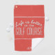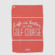 This bold red golf towel features the quote “Life Is Better at the Golf Course” in a mix of stylish script and clean modern lettering. A customizable template at the bottom allows you to add a name, initials, or short text. The bright red background gives the design a sporty, energetic feel that works for any golfer. All colors and text can be edited in Zazzle’s design tool.
