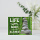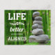 This design features white stylised text and spine graphic that says "Life Is Better When You're Aligned" on a zen pebbles and bamboo photo background. The back of the card features our recall/reactivation message, but you can easily edit/change the message to fit your needs.