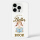 This phone case is adorned with the playful phrase "Life is Better with a Book". Between the text, there's a charming illustration of a girl happily immersed in a book. Her hair is loosely styled, and she's smiling contentedly, with a serene expression on her face. She’s surrounded by subtle hearts, adding a sense of joy and tranquillity to the scene.