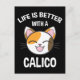 Life Is Better With A Calico. This cute & funny calico cat lover accessory is a perfect gift for a cat mum or cat dad who's a calico cat owner. Great for men, women, boys, girls, teens & kids who love calico cats. If you're the proud owner of a pet calico kitty and you love calico cats & kittens, this design is for you! Includes a cute cartoon graphic of an adorable orange, brown & white calico cat face.
