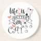 Life is Better With a Cat quote slogan Coaster