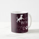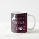 A perfect mug for those who find life much better with a dog in it. This coffee mug design features text that says "Life is better with a Dog" with a paw print and dog silhouette embellishment against a deep magenta rustic wooden background. Additional gift items available with this design as well.