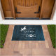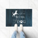 The Life is better with a Dog Door Mat is perfect for those who find life much better with a dog in it. Door mat design features text that says "Life is better with a Dog." with a paw print and dog silhouette embellishment against a deep blue rustic wooden background. Additional gift items available with this design as well.