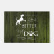 The Life is better with a Dog Door Mat is perfect for those who find life much better with a dog in it. Door mat design features text that says "Life is better with a Dog." with a paw print and dog silhouette embellishment against a deep green rustic wooden background. Additional gift items available with this design as well.