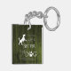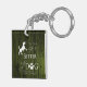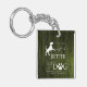A funny keychain for those who find life much better with a dog in it. Keychain design features text that says "Life is better with a Dog." with a paw print and dog silhouette embellishment against a deep green rustic wooden background. Additional gift items available with this design as well.