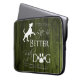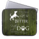 Protect your laptop when you're on the go with a Life is better with a Dog Laptop Sleeve. Laptop Sleeve design features a deep green rustic wooden background with the saying "Life is better with a Dog" with a paw print and canine silhouette embellishments. Additional gift items available with this design as well.