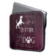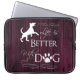 Protect your laptop when you're on the go with a Life is better with a Dog Laptop Sleeve. Laptop Sleeve design features a deep magenta rustic wooden background with the saying "Life is better with a Dog" with a paw print and canine silhouette embellishments. Additional gift items available with this design as well.