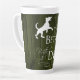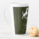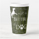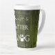 Perfect mug for those who love lattes and finds life much better when there is a dog in it. The Life is better with a Dog Latte Mug design features text that says "Life is better with a Dog." with a paw print and dog silhouette embellishment against a deep green rustic wooden background. Additional gift items available with this design as well.