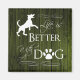 Add an amusing touch to your kitchen with a Life is better with a Dog Magnet. Magnet design features text that says "Life is better with a Dog." with a paw print and dog silhouette embellishment against a deep green rustic wooden background. Additional gift items available with this design as well.