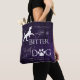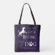 A perfect tote bag for those who find life to be much better with a dog in it. Tote bag design features text that says "Life is better with a Dog." with a paw print and dog silhouette embellishment against a deep purple rustic wooden background. Additional gift items available with this design as well.
