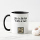 Great product, good delivery time, and an awesome idea for a gift! It was even better than I could have imagined, the customisation is incredible. The colour is perfect, it's dishwashable and microwaveable, the text print on the mug looks exactly like I wanted it to look and best of all, it's a large sized mug that you can drink plenty of coffee or whatever you want! I gifted this to my father and he loves it. He drinks coffee with that mug everyday :) I recommend.