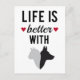 Life is better with cat and dog, text design postcard