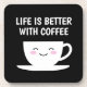 Life is better with coffee cute Kawaii cartoon cup beverage coaster. Funny gift for barista, coffee lover, friends, family etc.