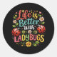 A cheerful, colorful design featuring playful typography, bright flowers, and adorable ladybugs celebrating happiness and simple joys.