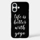 Life is better with yoga black iPhone 16 Case. Elegant typography design for yoga enthusiast, class trainer, sports coach or gym instructor. Fun personalised gift for him or her. Add your own name, funny quote or monogrammed initials. Personalised Birthday gift ideas for sporty men and women. Perfect for yoga instructor, teacher, student, friends, family etc. Change into any colour.